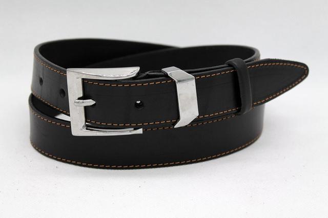 Склад: 100% натуральна шкіра. Пряжка та тренчик -класичний хромований комплект сырого кольору. Колір ременя -чорний. Смуга гладка-прошита коричневою ниткою. Ширина - 35 мм. Кількість дірок 5. Ремінь легко регулюється (коротшає). Довжина ременя може бути під замовлення.